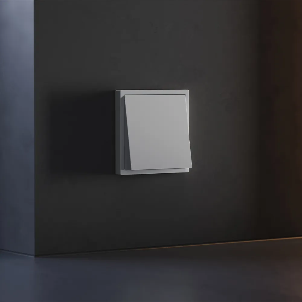 • Габариты: ширина и высота — 71 мм, монтажная глубина — 45 мм (подходит для стандартных и углублённых подрозетников)