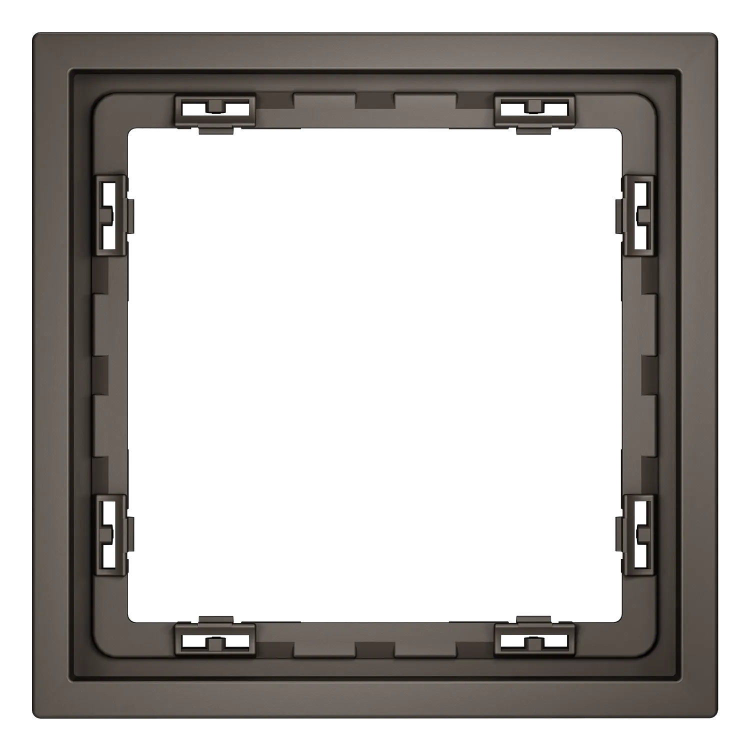 Обеспечивает быстрое и легкое соединение механизма с рамкой. Восемь фиксаторов по периметру нивелируют неровности стены и надежно удерживают конструкцию.
