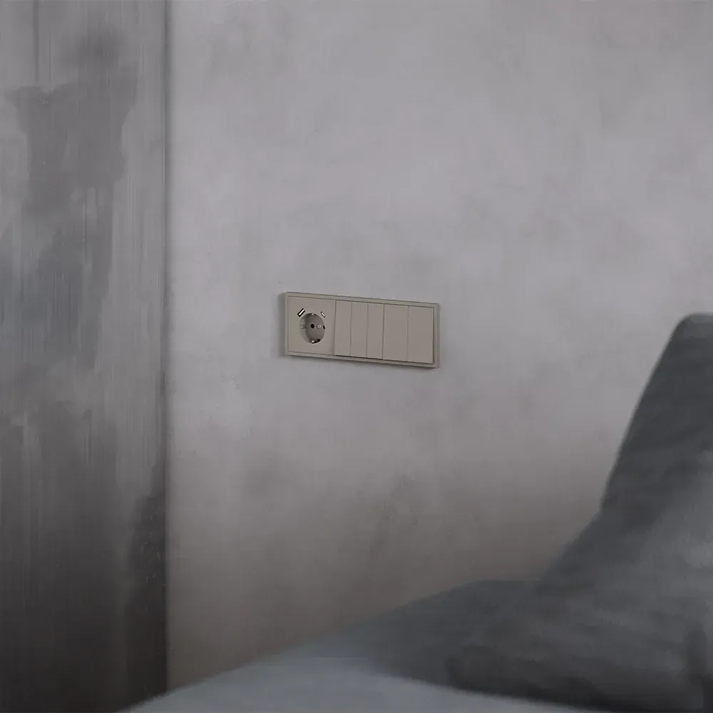 Перекрёстный переключатель полностью совместим с пластиковыми и стеклянными рамками той же серии и гармонично вписывается в любую композицию из розеток, выключателей и других устройств VOLTUM S70.